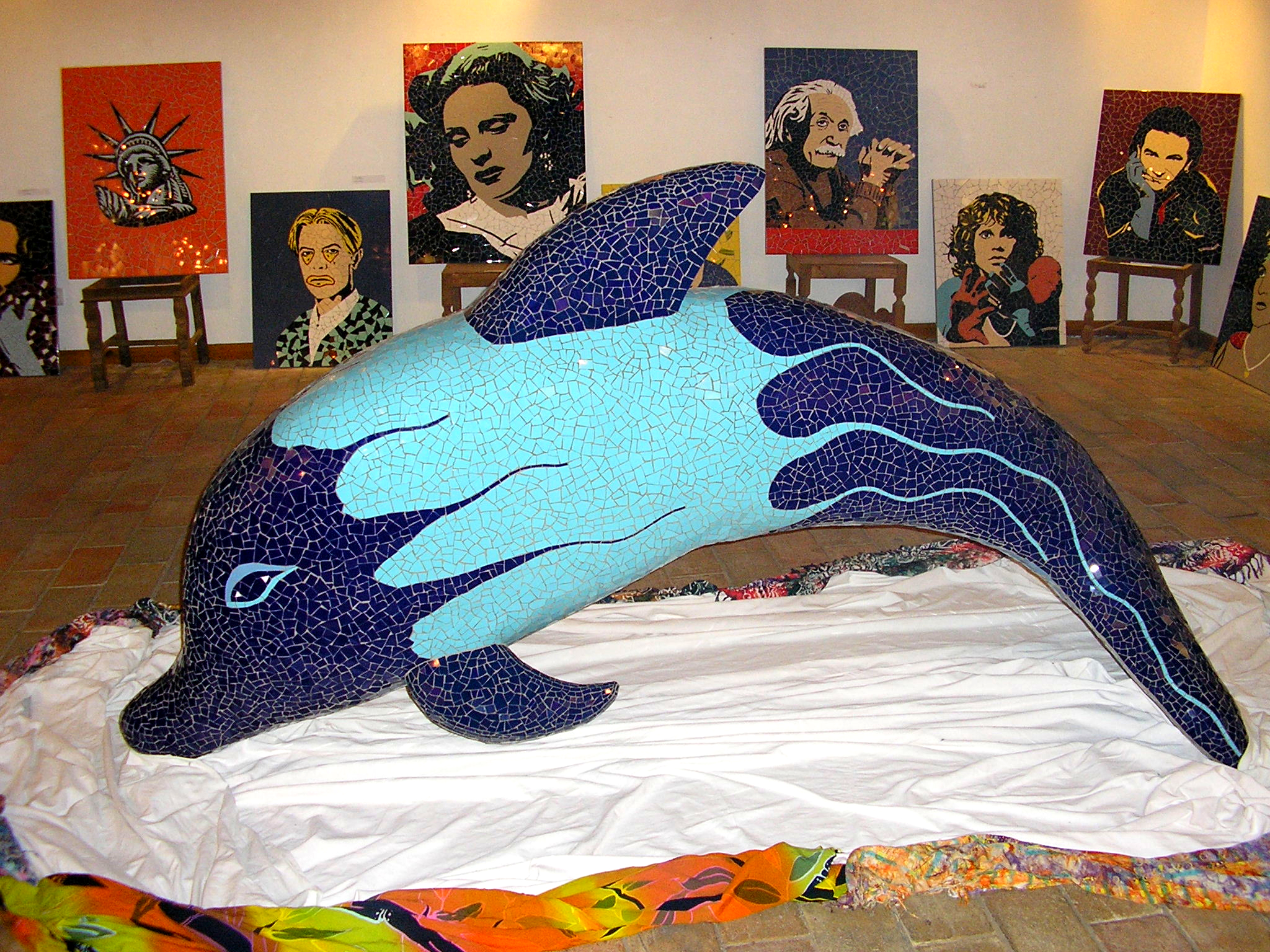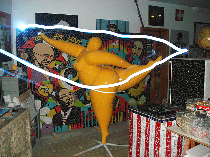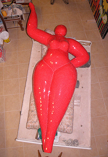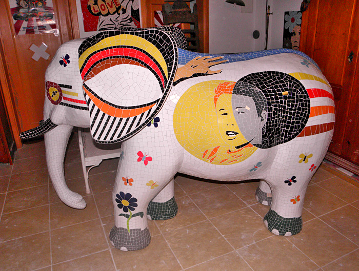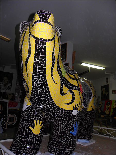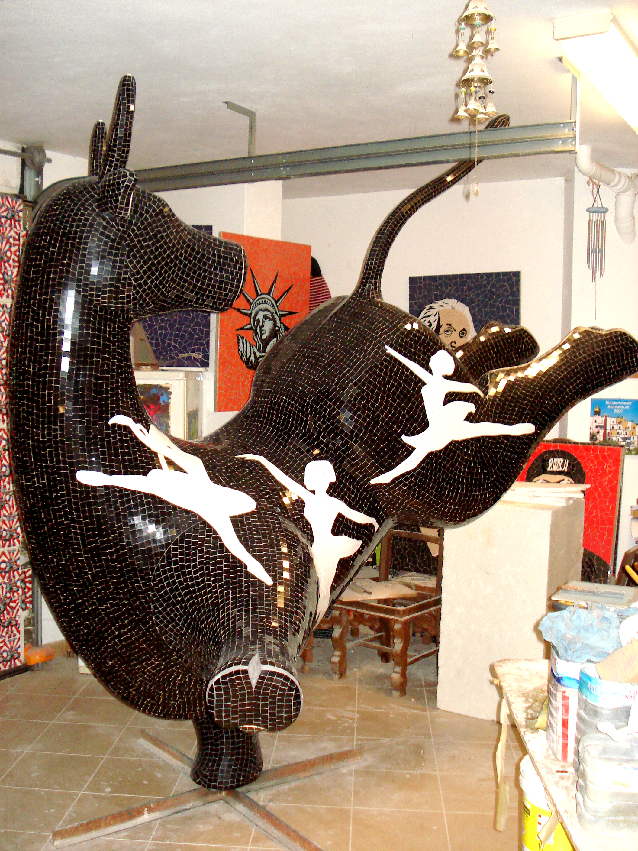The Bull´s attributes of strength & power, courage & endurance, fearlessness & selflessness combined with the symbol fire have a physical as a spiritual application. Tiles are made out of clay, painted and burned in firing temperatures. The fragmented shaped ceramic tiles stand for the individuality of people and their attitude forwards building up in character during times of flaming challenges.